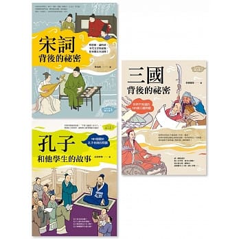 【生活中的國文課套書】共有三冊:《宋詞背後的祕密(生活中的國文課1):唱情歌、論時政,宋代文青的面貌,原來藏在宋詞裡!》、《三國背後的祕密(生活中的國文課2):你所不知道的101個三國問題》、《孔子和他學生的故事(生活中的國文課3):101個關於孔子老師的問題》