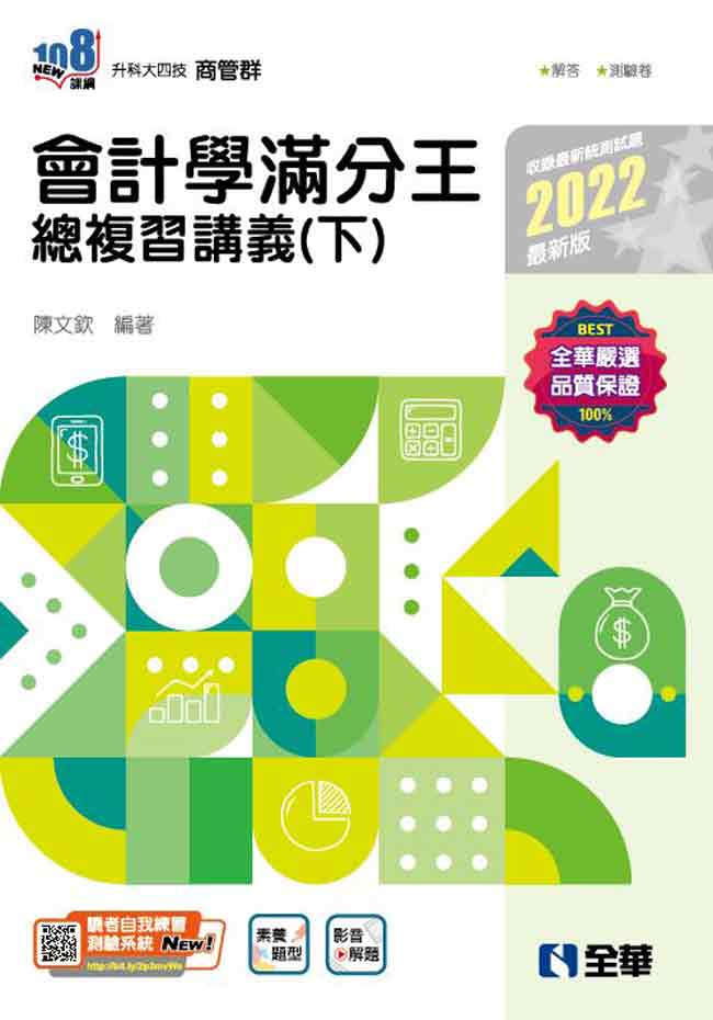 > 升科大四技-會計學滿分王總複習講義(下)(2022最新版)(附解答本)?