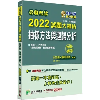 本書收錄公職考試【抽樣方法與迴歸分析(含統計實務、統計實務概要)】104~110年共七年的申論試題詳解,幫助您一次準備全面應戰、熟悉題型順利上榜。