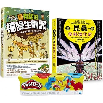 最有趣的昆蟲與生物遊戲套書(Play-Doh培樂多四色組補充罐黏土+漫畫昆蟲笑料演化史+最有趣的撞臉生物觀察百科)