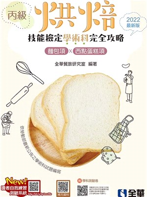 根據勞動部勞動力發展署最新公告編寫而成。適合應考烘焙食品丙級之麵包項與蛋糕項的考生參考。編輯著作群有數十餘年之教學經驗及精湛實作技巧,竭力於教材編制。全書有系統介紹主題或觀念,文字敘述精簡,並以圖表呈現;術科以步驟分解圖來呈現,學科試題附有詳解,有助考生應考實力。