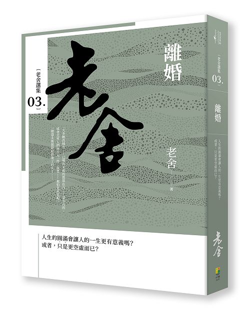 《離婚》這部作品,老舍自言是「擠」出來的,原因在於出版社之間的競爭。雖然寫作時間較短,寫作時的燥熱天氣也相當程度困擾老舍,但他完成的這部代表作,不但是他個人的代表作,也寫活了男人們的中年危機──浪漫的,或者不那麼浪漫的。雖然沒有家國之思的磅礡,卻更貼近平凡人的日常生活。且有如一個替身,代替太多苦悶的人說出心中的苦悶。