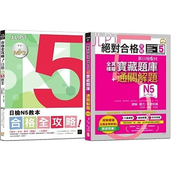 日檢N5教本及寶藏題庫高分合格暢銷套書:合格全攻略!日檢N5教本【聽力,文法,單字,閱讀】,一次通過+絕對合格攻略!新日檢6回全真模擬N5寶藏題庫+通關題解