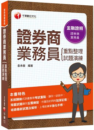 社會不停的在變化,整體大環境對於人才的需求也不斷的在變化。金融業每年的年終基本上都是一般上班族的好幾倍,讓人羨慕不已!但是要怎麼樣才能踏入這個圈子呢?「證照」就是你的入場券!金融證照是現在想要投身、或者是正在從事金融業的人必備的條件,尤其是證券業這種需要高度專業性的工作,政府的規定與限制也相對嚴格許多,所以業界對於證照的重視度也就越高。所以建議想要從事證券工作的各位,一定要取得「證券業務員」證照!而選對適合你的參考用書,必定能為你節省時間,以更有效率的方式取得證照!