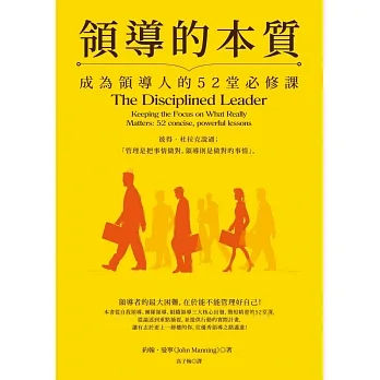 本書強調領導統御的基本功,是作者長年協助超過十萬名領導者的經驗淬鍊而成,從自我領導、團隊領導、組織領導三大核心出發,簡短精要的52堂課,從論述到重點摘要,並提供你實際行動的計畫,無論你是領導階層、位居管理職,或是有志於更上一層樓、想成為未來領導人的你,本書都是必讀的領導指南!