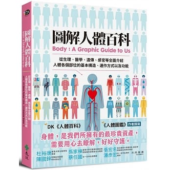 人體總共有206塊骨骼,所有的血管連接起來長達10萬公里,每秒製造出來的新細胞就有兩千五百萬個。人體還是由好幾兆個原子所組成,而這些原子可是在宇宙大霹靂就已經誕生了。人體處處都令我們感到驚奇,又陪伴著我們一直到死亡的那一天,然而,我們大多數人對於自己的身體卻所知極為有限。