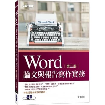舉凡企業職場、教育階層都可見Microsoft Word的蹤影,不論是非專業的文件、手冊,還是專業的論文、研究報告等各式各樣的文件編排,都少不了Word。本書內容將以Microsoft Word為主要寫作工具,伴您走過論文寫作、報告編撰的心路歷程。全書內容涵蓋: