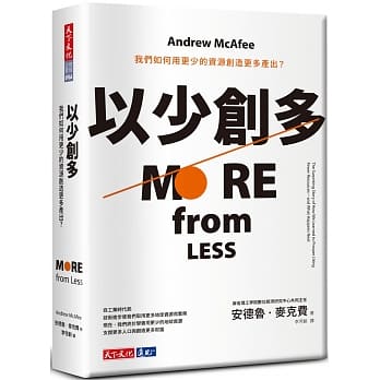 安德魯.麥克費在本書中提出一個頗具說服力的藍圖,闡釋我們如何使用更少的自然資源來供應人類生活所需,改善人類境況及大自然狀態。──Salesforce 董事長暨共同執行長,馬克.貝尼奧夫(Marc Benioff)