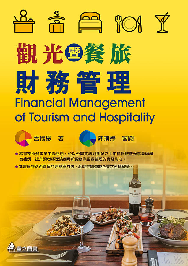 全書10章分為3篇,首篇「財務評估導論」連結餐旅產業與財管的重要性,搭配真實財報,靈活分析指標,並快速上手終值現值的訣竅。第2篇「財務融資與營運管理」掌握本量利與邊際貢獻率的特性,配合槓桿、股債券評價與資本預算,熟悉融資規則,精確分配與管理營運資金。