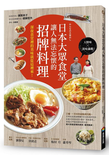 這次,日本知名美食專欄作家遠藤哲夫、料理研究家瀨尾幸子,攜手走進大眾食堂的「美味基地」,分享最受歡迎的平民料理,挖掘小巷弄裡大廚神的美味祕訣,並且step by step的公開食譜作法。