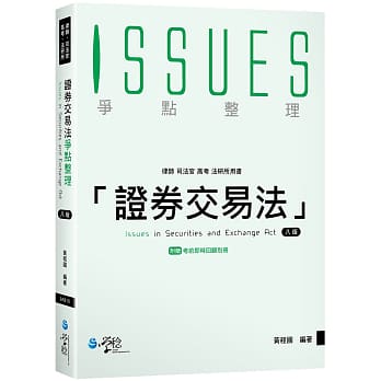 「證交法就初次接觸的讀者而言,應該是入門門檻較高且具有技術性立法的一科,再加上主管機關對於證券市場頒布「多如牛毛」般的相關子法和行政函令,想要全盤瞭解,確實是一大困難,因此準備證交法考試最有效的方式,就是在證交法的脈絡中,一一點出爭點,透過爭點整理,層層剝開證交法的問題,深入淺出瞭解爭點。本書盡可能將證交法爭點網羅並予以白話方式說明,讓考生瞭解爭點的問題核心,並瞭解實務及學者論點所在,理解後反芻於答題上,以達最高投資報酬率的學習及複習。」