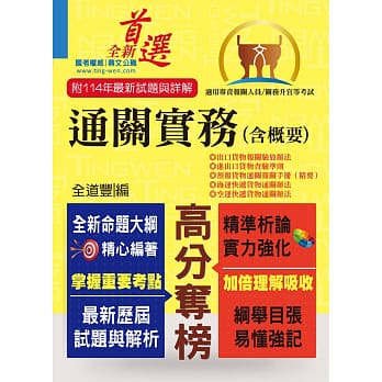 (三)第三部分「歷屆試題與解析」:蒐羅112年至114年專責報關人員與關務人員升官等相關考試試題。正所謂「鑑往知來」,透過對歷屆試題之研習及演練,除能使讀者實力強化外,更便於掌握最新命題之趨勢。且每年度試題皆提供配分表,使讀者能全盤掌握命題重點。