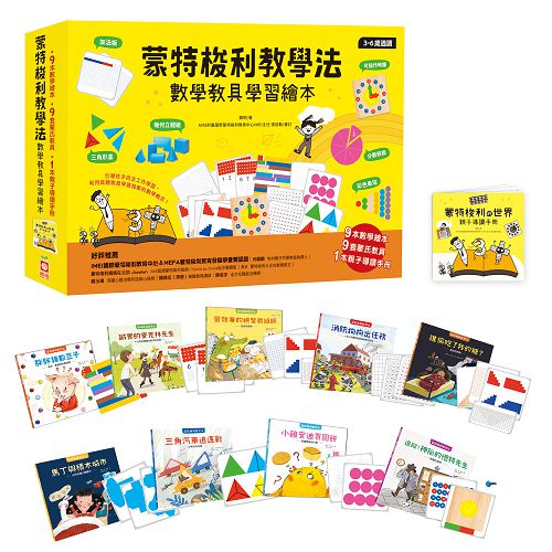 9本數學繪本,9組蒙氏教具,1本親子導讀手冊