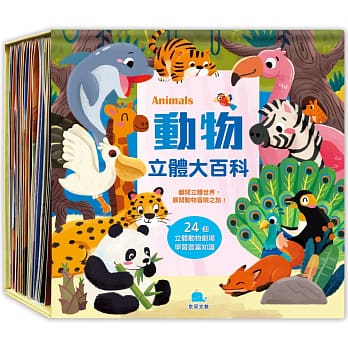 全書共24個生動的立體設計,讓動物栩栩如生的展現在眼前!從森林裡的老虎、沙漠裡的駱駝到海洋中的小丑魚,每一個動物都會「彈」出書本,彷彿身臨其境,孩子可從中認識動物的特徵和習性,在充滿樂趣的閱讀中學習新知識!