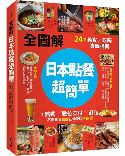 現在只要透過這本書,就能讓你以圖解方式進出餐廳彷彿自家廚房,不必看圖說故事、不再需比手畫腳。透過實際採訪拍攝的圖片與文字介紹,同時附上中、日文對照名稱(與發音)或實用會話(日文),就算說不出口,也能輕鬆手指點餐!