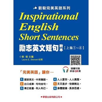 「勵志英文短句教本上集1-4」精選美國口語精華,充滿正能量的短句,不僅能激勵別人,也能鼓勵自己。全書共有4個單元,每個單元有12回,每一回9句,共432個精彩的句子。精心編排,三句為一組,九句為一回,容易記,不容易忘。熟讀本書,能讓同學說起英文來,滔滔不絕,句句金句,出口成章,令人佩服。