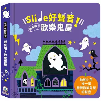 在【Slide好聲音!聽見囉!】系列中,每一個跨頁都有滑動的音效機關,當孩子滑動機關的時候,就可以切換兩種不同的聲音,有熱情的幽靈、愛跳舞的骷髏、愛唱歌的大野狼、震耳欲聾的雷聲、活潑的野貓、好動的老鼠們、熱心的女巫、帥氣威風的蝙蝠們。高音質的呈現,讓孩子迅速感知聲音變化,認識各種有趣的聲音,讓鬼屋變得好熱鬧,一點都不可怕!