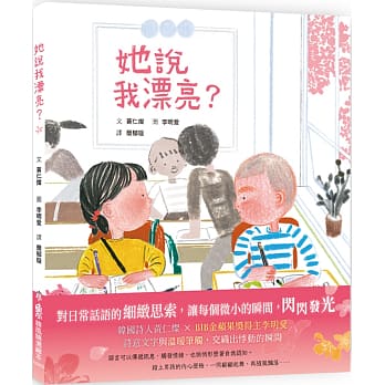 本書不僅是語言美感的啟蒙書,也打破了性別框架下「漂亮」只能用來形容女孩的刻板印象,適合親子與師生共讀,回歸到「讚美」、「感受」與「如何看待自我」的對話本質。