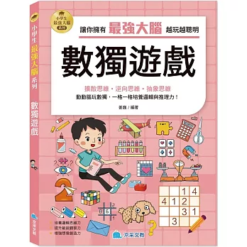 本書設計了100道數獨題目,從基礎的四宮、六宮、八宮到九宮數獨,再延伸到進階的變形數獨,引導孩子運用「直接觀察」、「行列排除法」、「唯餘法」、「區塊排除法」、「設候選數」等解題策略,循序漸進地找出規律與答案。不僅能激發孩子的專注力與耐心,也能培養分析與解決問題的能力。
