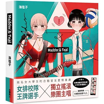 以短篇故事組合而成,歡樂搞笑、青澀曖昧等元素,一點一滴凝聚為Madder & Teal的獨特時光,在海塩子筆下,女排得分王牌的徐雪與人氣獨立樂團主唱兼吉他手的夏月,兩名大四女生作為室友展開了戀愛攻防的日常,帶來清新酸甜又怦然心動的曖昧時分。