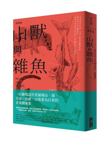《山獸與雜魚》分成「啟.山.海.刀」四輯,收錄其中的三十餘篇文字,在與山海萬物邂逅間,在各式圖鑑之外,林敬峰親身觀察蟲虫蟻獸、海物魚蝦蟹,「再往前走,頭頂處傳來一陣喧嘩,用手電筒的餘光一照,上頭的岩壁吊掛著密密麻麻上百隻的蝙蝠,與前者不同,這群大傢伙不斷扭著脖子、開闔翅膀、抖動泛著微微金色光澤的毛皮,如一團開得茂盛的龍眼花。牠們用我們無法聽懂甚至無法聽見的語言議論紛紛,在一片滋滋滋中,忽然有那麼幾隻張開碩大的弧翼無聲的飛翔,把尿撒在我們頭上。」