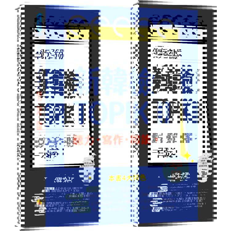 相信經過4週的自我測試,與各種題型鞭辟入裡的解析,準備TOPIK II絕對是易如反掌!不管目標是中級或是高級,更是勝券在握!真的只要短短4週!跟著《4週完全征服 新韓檢TOPIK II 聽力.寫作.閱讀,一本搞定!》,一次征服TOPIK II!