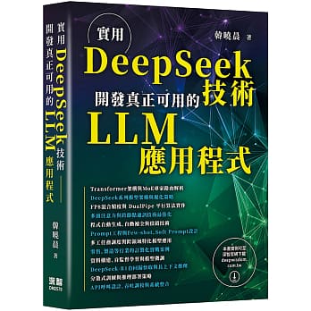 本書共分為十一章,涵蓋大模型核心技術與實務應用。第一章介紹大模型的演進歷程與基礎概念,說明深度學習、Transformer 與 MoE 架構的發展脈絡。第二章深入解析 DeepSeek 的核心設計,包括多頭注意力、FP8 混合精度與跨節點通訊技術。第三章建立大模型開發基礎,從 API 調用到資料準備與模型訓練。第四章聚焦對話生成與語義理解,實作多輪對話與語意分析。第五章實作從文字到程式的智慧開發流程,包含程式補全與錯誤偵測。第六章說明多工學習與跨領域應用,包括少樣本調適與領域特化。第七章系統介紹 Prompt 工程設計與調優策略。第八章探討模型最佳化與分散式部署。第九章解析資料構建與自監督學習流程。第十章展示訂製化模型開發在零售與製造業的應用案例。第十一章專章說明 DeepSeek-R1 的推理引擎與最新優化技術。全書內容完整銜接理論與實踐,適合開發者快速掌握 DeepSeek 的開發核心。