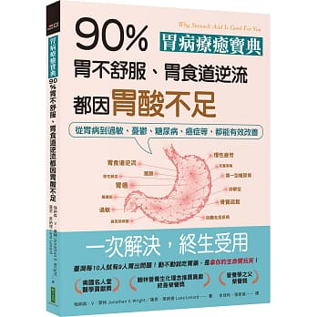 胃酸專家及預防醫學大師──強納森博士,根據50年臨床經驗,提出一個早在100年前就發現卻被嚴重忽略的真相:絕大部分胃食道逆流,受胃灼熱、脹氣大嗝或消化不良所苦的人,都有胃酸分泌不足的症狀,而不是胃酸過多!在他「實際檢驗胃酸分泌」的數千名個案中,90%胃食道逆流的人,事實上都胃酸過少。