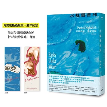 相關著作:《跟蹤雷普利【雷普利系列04】(限量附贈海史密斯逝世30週年紀念版「作者親繪貓咪 」書籤):犯罪小說史上最令人不安的經典》《雷普利遊戲【雷普利系列03】(限量附贈海史密斯逝世30週年紀念版「作者親繪貓咪 」書籤):犯罪小說史上最令人不安的經典》《地下雷普利【雷普利系列02】(限量附贈海史密斯逝世30週年紀念版「作者親繪貓咪」書籤):犯罪小說史上最令人不安的經典》《天才雷普利【雷普利系列01】(限量附贈海史密斯逝世30週年紀念版「作者親繪酷貓」書籤):犯罪小說史上最令人不安的經典》《火車怪客【限量附贈作者親繪「伴讀貓咪」精美藏書票】(海史密斯逝世30週年紀念版):「交換殺人」的開創之作,心理驚悚的永恆經典!》