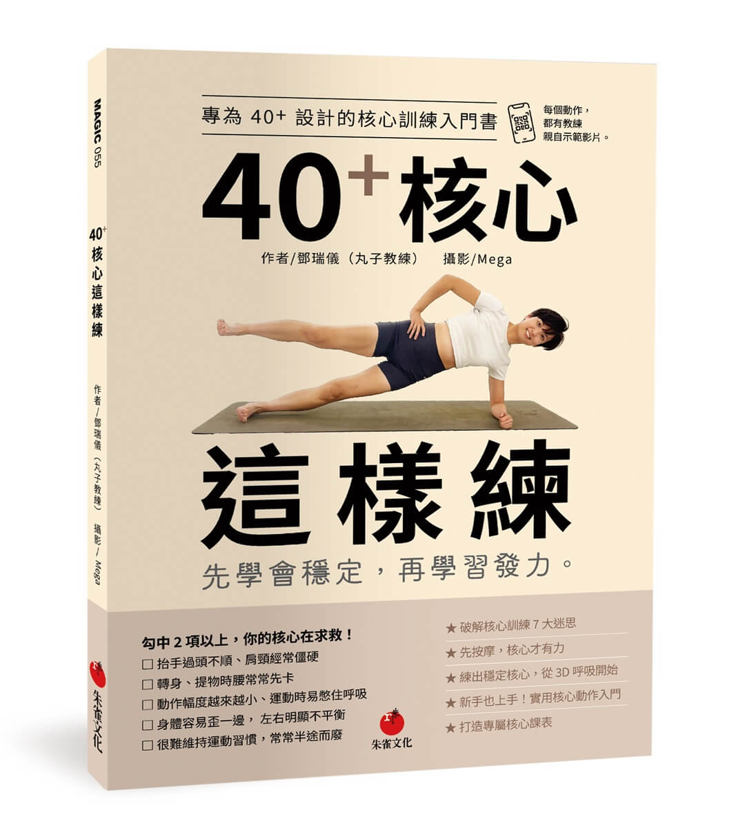 《40+ 核心這樣練》一次破解 40+ 最常犯的 7 大運動迷思,搭配獨家「3211 訓練流程」,每天只要 10 分鐘,從放鬆、伸展、呼吸到核心啟動,安全找回穩定核心力。