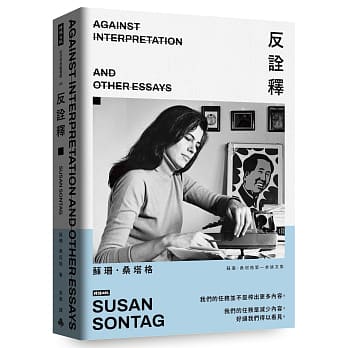 本書收錄桑塔格一九六○年代最重要的文章,包括〈反詮釋〉、〈論風格〉、〈「敢曝」筆記〉,以及對沙特、卡繆、高達、布列松、李維史陀等人的深刻討論,議題涵蓋文學、電影、哲學、精神分析乃至當代宗教思想。從反詮釋的理論基礎,到對現代藝術與科技文明的分析,再到對新感受力的召喚,改變了藝術批評與文化研究的走向,《反詮釋》是思想上的挑釁,也是一種文化行動,同時持續提醒著我們:在資訊爆炸與意義氾濫的時代,唯有找回最原初的感受力,才能真切地面對藝術與世界。