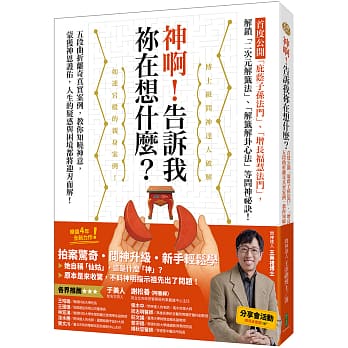 統合邏輯歸納、思考方向,諸多「從籤詩找欠點的心法訣竅」、「二次元解籤法」、「問事心法」、「解籤心法」……絕對是問神問事的必備寶典!